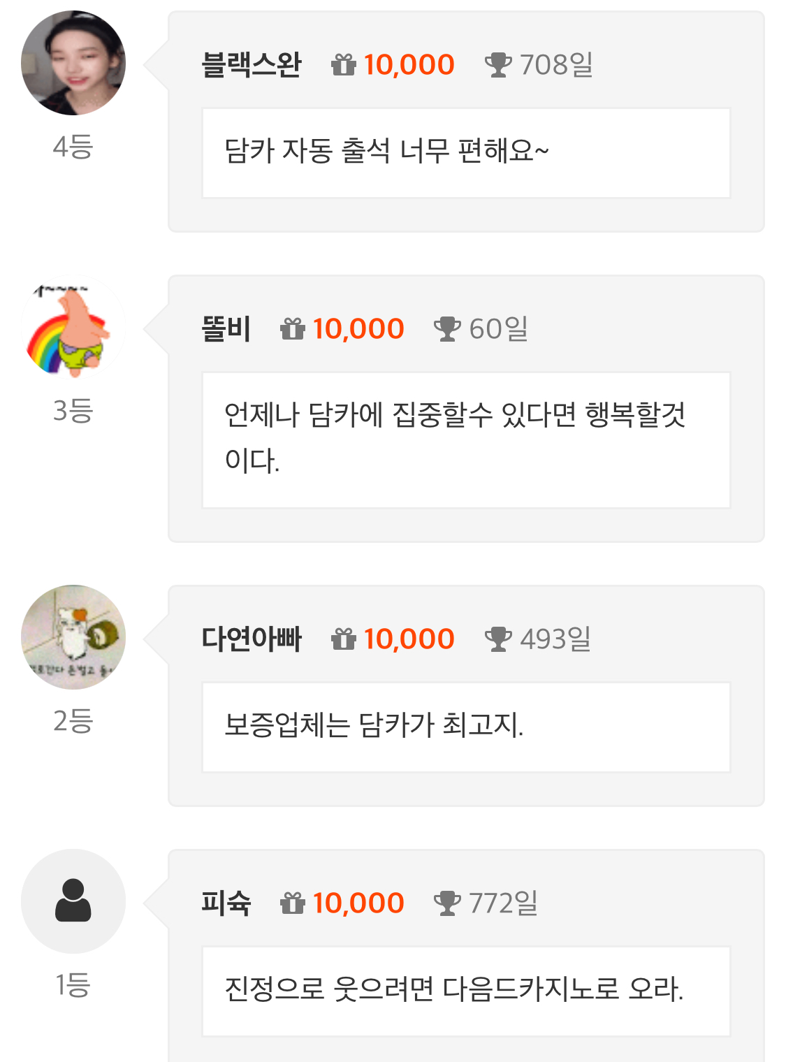 3순방 똘비 8 4 0 4시간전 감사합니다 화이팅입니다 4 0 https://daumdca.com/bbs/board.php?bo_table=free&wr_id=5669166 Author 0 0 Lv.중령 똘비 중령 27,921,960 (70%) 똘비님 보유 포인트 : P 1,953,102 10.21 지굼생각해보니 +2 10.21 감사합니다 +8 10.21 3순방 10.21 언제나 담카에 집중할수 있다면 행복할것이다. +12 10.20 앉아봅니다.