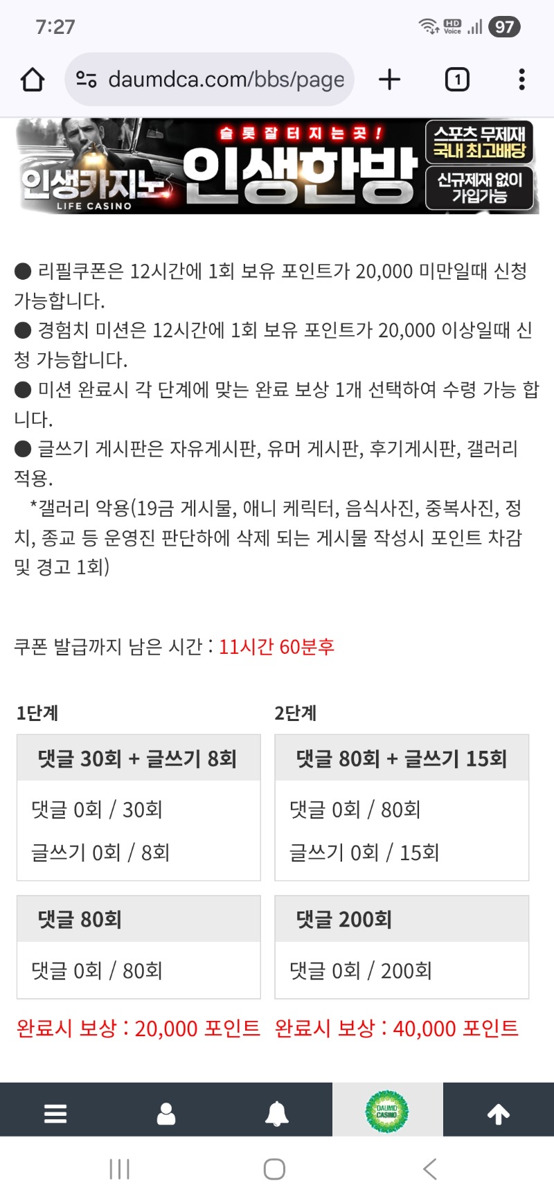 포인트로 가보자구요 ~ 김신 7 4 0 4시간전 리필가즈아 ~~^^ 4 0 https://daumdca.com/bbs/board.php?bo_table=free&wr_id=5901754 Author 0 0 Lv.중위 김신 중위 12,172,655 (72%) 김신님 보유 포인트 : P 104,500 +7 12.21 포인트로 가보자구요 ~ 12.21 99퍼센트의 가능성 다음드카지노에서 학인. +8 12.20 문카후기 +15 12.20 10등 감사합니다 12.20 언제나 담카에 집중할수 있다면 행복할것이다.