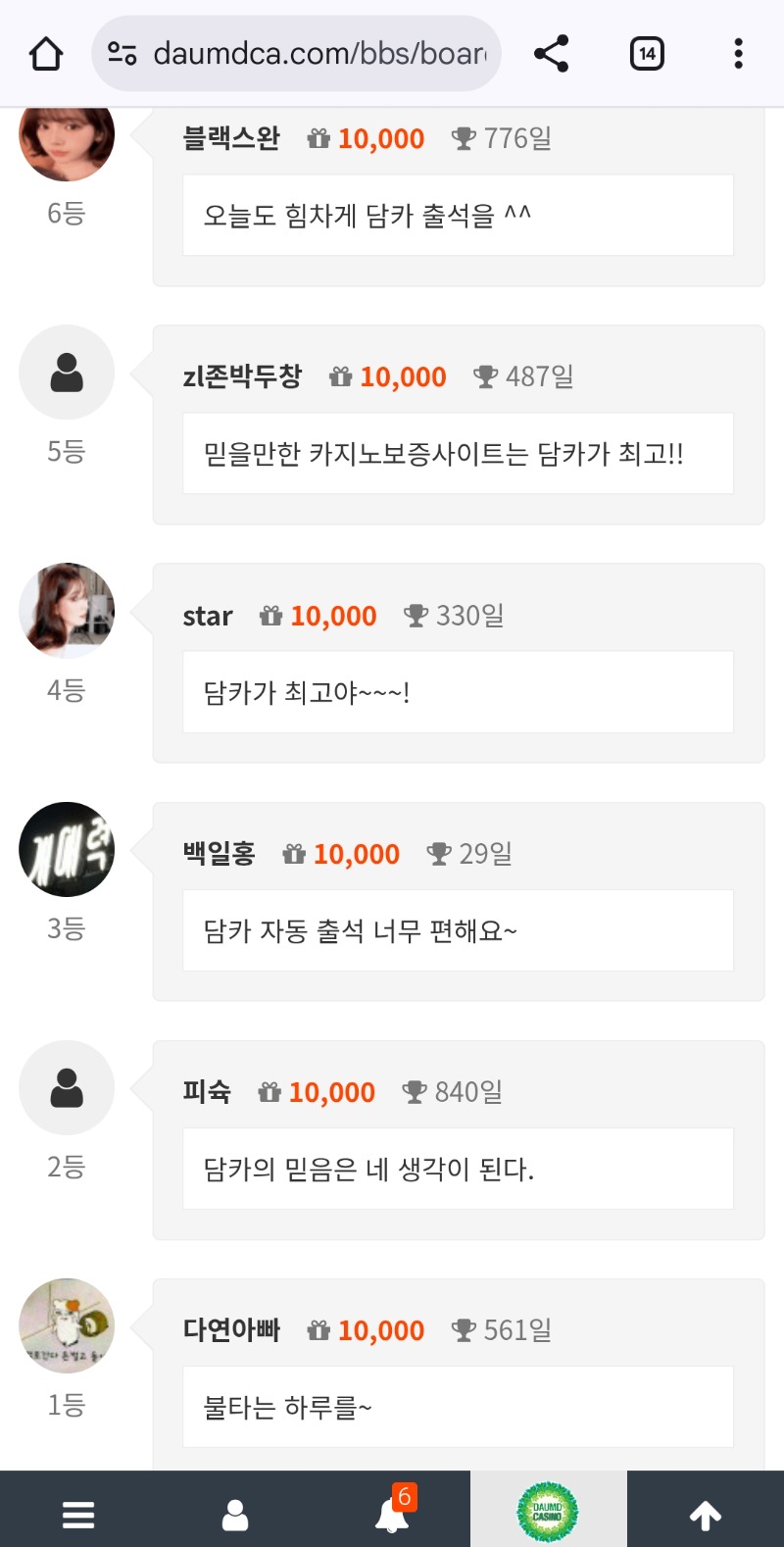 10만포ㅅ 다연아빠 7 4 0 2시간전 4 0 https://daumdca.com/bbs/board.php?bo_table=free&wr_id=5921068 Author 9 4 Lv.소령 다연아빠 소령 152,286,314 (32%) 다연아빠님 보유 포인트 : P 202,486 +7 12.28 10만포ㅅ 12.28 불타는 하루를~ +4 12.27 출첵 대기! +8 12.27 굿밤이에요 +7 12.27 저녁 미셔니 가보자~