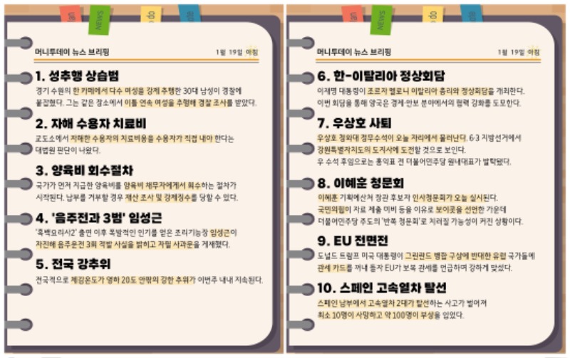 19일 머니투데이 뉴스 브리핑 S클래스천문 2 1 0 1시간전 19일 머니투데이 뉴스 브리핑 1 0 https://daumdca.com/bbs/board.php?bo_table=free&wr_id=6010881 Author 3 0 Lv.소장 S클래스천문 소장 67,248,433 (74%) S클래스천문님 보유 포인트 : P 1,074,801 01.19 10 01.19 9 01.19 8 01.19 7 01.19 6