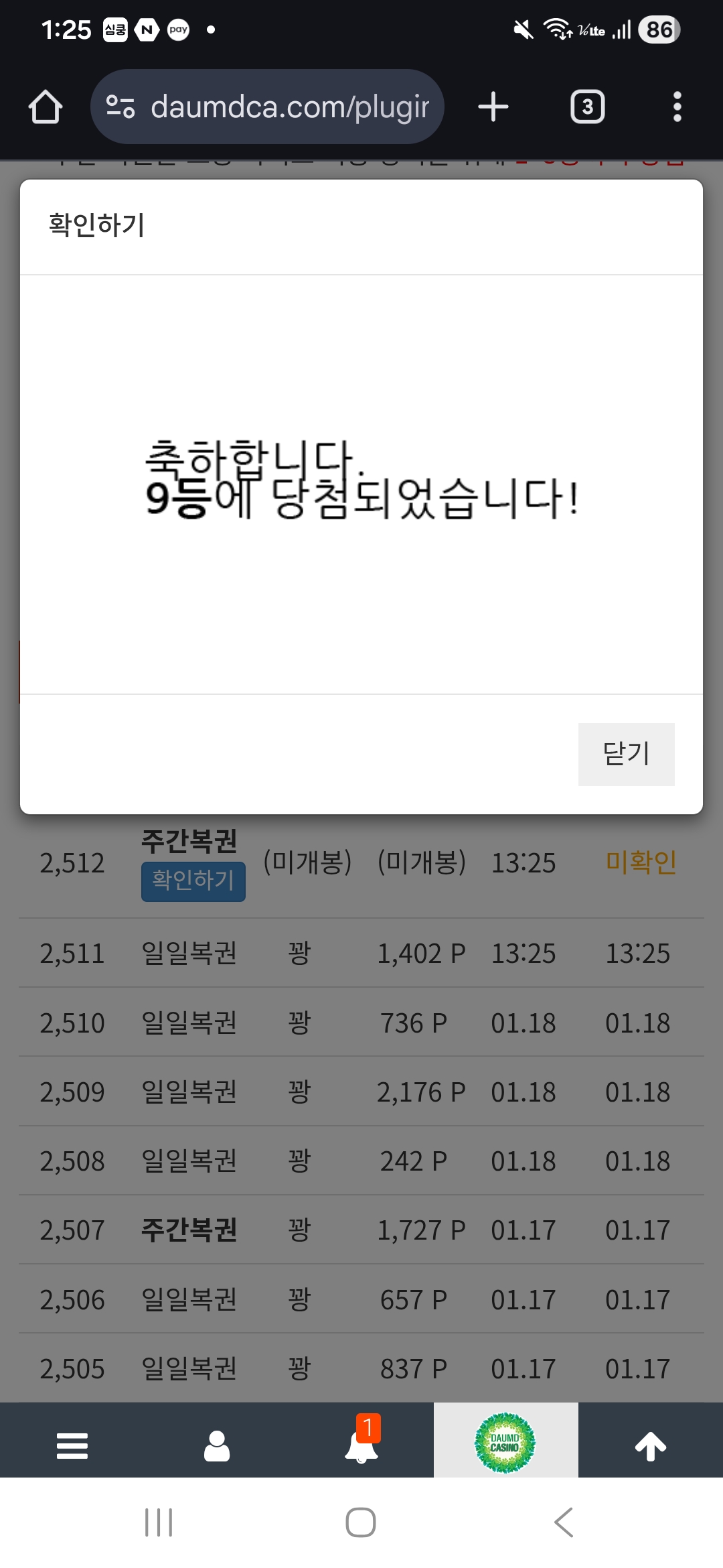 주간복권 9등 뱁새 7 6 0 4시간전 나이수 9등 나이숴 6 0 https://daumdca.com/bbs/board.php?bo_table=free&wr_id=6026850 Author 0 0 Lv.대위 뱁새 대위 16,830,744 (76%) 뱁새님 보유 포인트 : P 2,995 +7 01.23 주간복권 9등 +6 01.23 생각 날 때마다 다른 걸 하려고 하다보니 01.23 담카~오늘도 화이팅!! 01.22 실패는 잊어라 그러나 그것이 준 교훈은 절대 잊으면 안… 01.21 나보다 출석 빨리하는사람 나와봐~