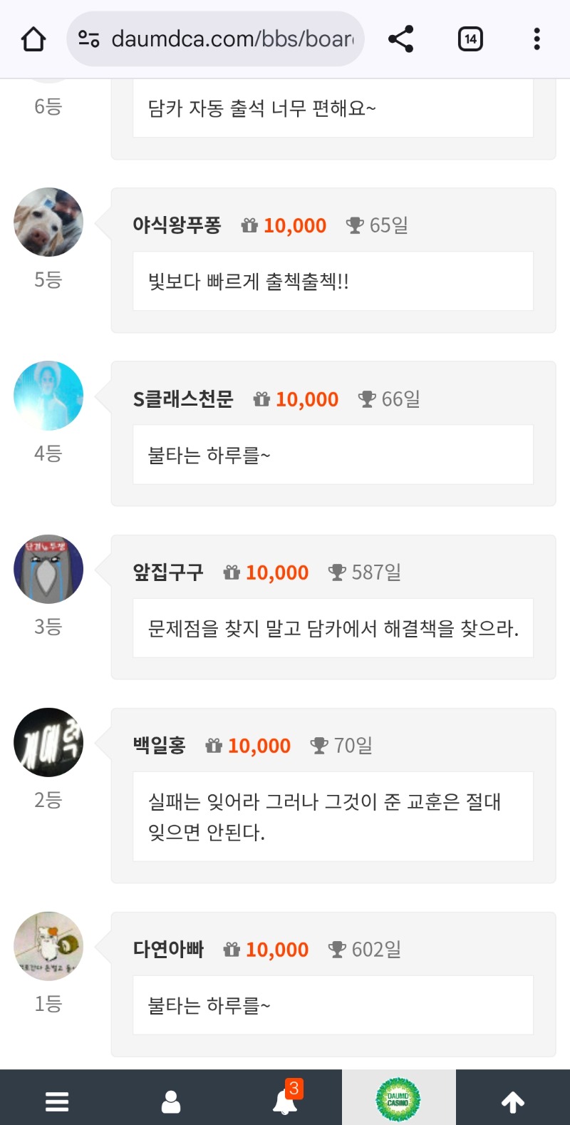 10만포 꺼~억! 다연아빠 9 6 0 2시간전 6 0 https://daumdca.com/bbs/board.php?bo_table=free&wr_id=6083120 Author 9 4 Lv.중령 다연아빠 중령 158,250,500 (5%) 다연아빠님 보유 포인트 : P 5,770,646 +4 02.07 굿밤되세요~ +9 02.07 10만포 꺼~억! 02.07 불타는 하루를~ +5 02.06 출첵 대기! +5 02.06 굿밤이에요~