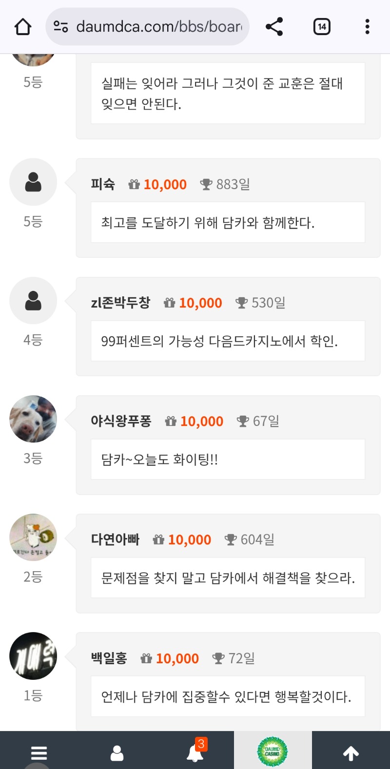 순방 나이서ㅅ 다연아빠 10 8 0 2시간전 8 0 https://daumdca.com/bbs/board.php?bo_table=free&wr_id=6089497 Author 9 4 Lv.중령 다연아빠 중령 158,513,034 (8%) 다연아빠님 보유 포인트 : P 6,427,568 +6 02.09 굿밤되세요~ +8 02.09 퐈이야~ +10 02.09 순방 나이서ㅅ 02.09 문제점을 찾지 말고 담카에서 해결책을 찾으라. +6 02.08 출첵 대기!