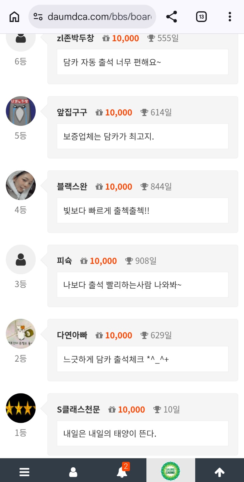 순방 나이서ㅅ 다연아빠 5 3 0 1시간전 3 0 https://daumdca.com/bbs/board.php?bo_table=free&wr_id=6163274 Author 9 4 Lv.중령 다연아빠 중령 161,946,963 (42%) 다연아빠님 보유 포인트 : P 8,970,528 +5 03.06 순방 나이서ㅅ 03.06 느긋하게 담카 출석체크 *^_^+ +3 03.05 출첵 대기! +5 03.05 굿밤이에요~ +14 03.05 오늘 처음 이맛을 보는군!!