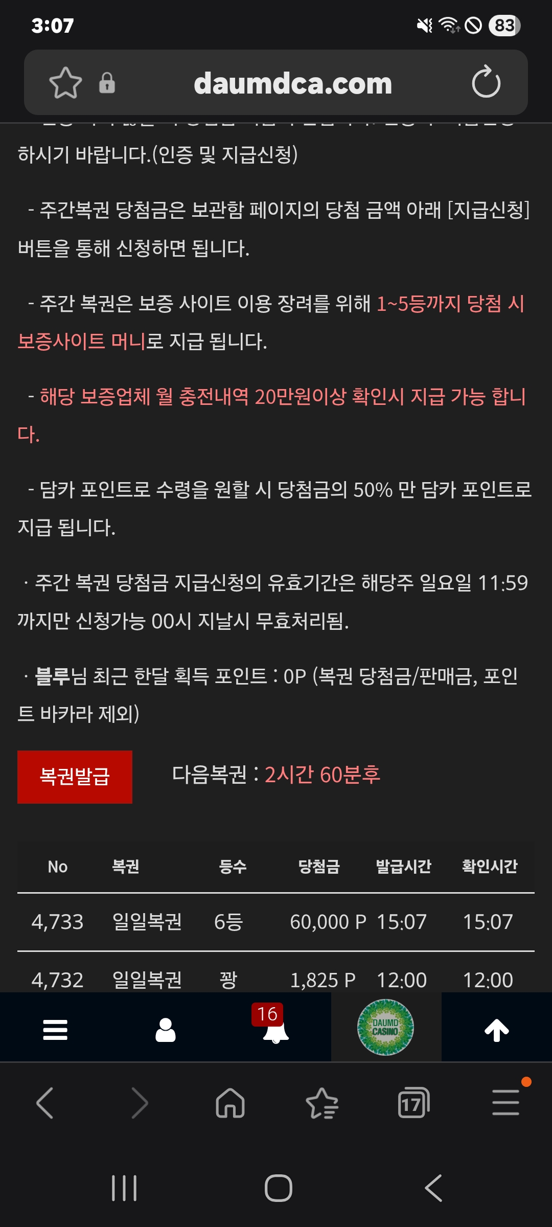 6등 나이스 ㅎ 블루 5 3 0 2시간전 감사합니다 잘 쓰겠습니다 ㅎ 3 0 https://daumdca.com/bbs/board.php?bo_table=free&wr_id=6167658 Author 9 6 Lv.대장 블루 대장 115,302,476 (97%) 블루님 보유 포인트 : P 32,060 +5 03.07 6등 나이스 ㅎ +4 03.07 미션 가즈아 화이팅 ㅎ 03.07 50 +3 03.07 미션 클리어 ㅎ 03.07 하리수