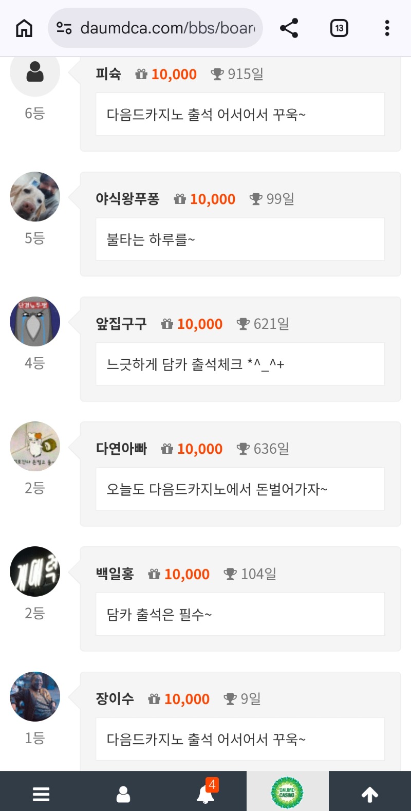 순방 나이서ㅅ 다연아빠 5 4 0 1시간전 4 0 https://daumdca.com/bbs/board.php?bo_table=free&wr_id=6179992 Author 9 4 Lv.중령 다연아빠 중령 163,080,455 (53%) 다연아빠님 보유 포인트 : P 4,128,234 03.13 서브 테더 충하니 테더로 겜해야하네요ㅎㄷㄷ +2 03.13 퐈이야~ +5 03.13 순방 나이서ㅅ 03.13 오늘도 다음드카지노에서 돈벌어가자~ +3 03.12 출첵 대기!
