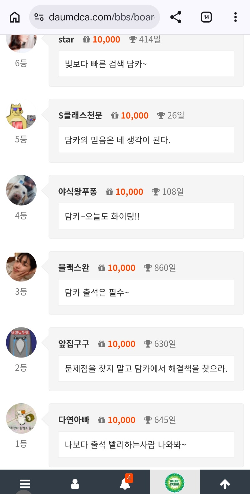 10만포ㅅ 다연아빠 5 4 0 1시간전 4 0 https://daumdca.com/bbs/board.php?bo_table=free&wr_id=6199303 Author 9 4 Lv.중령 다연아빠 중령 164,388,197 (66%) 다연아빠님 보유 포인트 : P 7,808,968 +1 03.22 굿밤되세요~ +3 03.22 퐈이야~ +5 03.22 10만포ㅅ 03.22 나보다 출석 빨리하는사람 나와봐~ +2 03.21 출첵 대기!