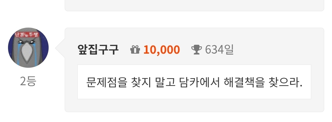 으아닛!! 앞집구구 7 5 0 2시간전 감으로 때린건데 2등 나이스 5 0 https://daumdca.com/bbs/board.php?bo_table=free&wr_id=6208195 Author 14 9 Lv.예비역 앞집구구 예비역 128,322,131 (82%) 앞집구구님 보유 포인트 : P 127,883 +7 03.26 으아닛!! 03.26 문제점을 찾지 말고 담카에서 해결책을 찾으라. +7 03.25 적셔보시죠 +10 03.25 맛저러여 +4 03.25 5