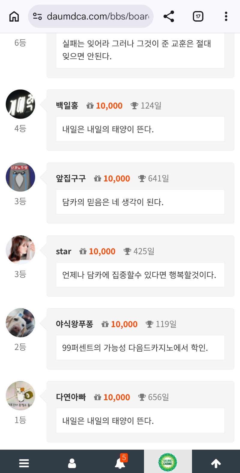 10만포ㅅ 다연아빠 3 2 0 1시간전 2 0 https://daumdca.com/bbs/board.php?bo_table=free&wr_id=6222467 Author 9 5 Lv.중령 다연아빠 중령 165,658,206 (79%) 다연아빠님 보유 포인트 : P 1,148,982 +3 04.02 퐈이야~ +3 04.02 10만포ㅅ 04.02 내일은 내일의 태양이 뜬다. +2 04.01 출첵 대기 +7 04.01 굿밤이에요~