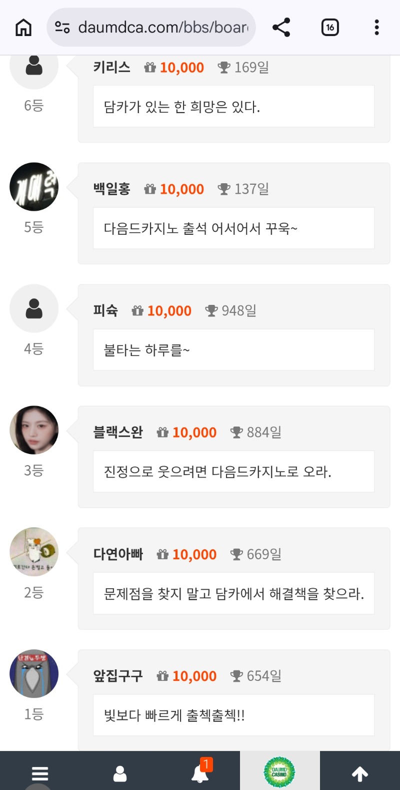 순방ㅅ 다연아빠 3 3 0 3시간전 3 0 https://daumdca.com/bbs/board.php?bo_table=free&wr_id=6248943 Author 9 5 Lv.중령 다연아빠 중령 167,281,904 (95%) 다연아빠님 보유 포인트 : P 3,426,353 +6 04.15 자러갑니다~ +3 04.15 순방ㅅ 04.15 문제점을 찾지 말고 담카에서 해결책을 찾으라. +2 04.14 출첵 대기! +8 04.14 8복이 나이서ㅅ