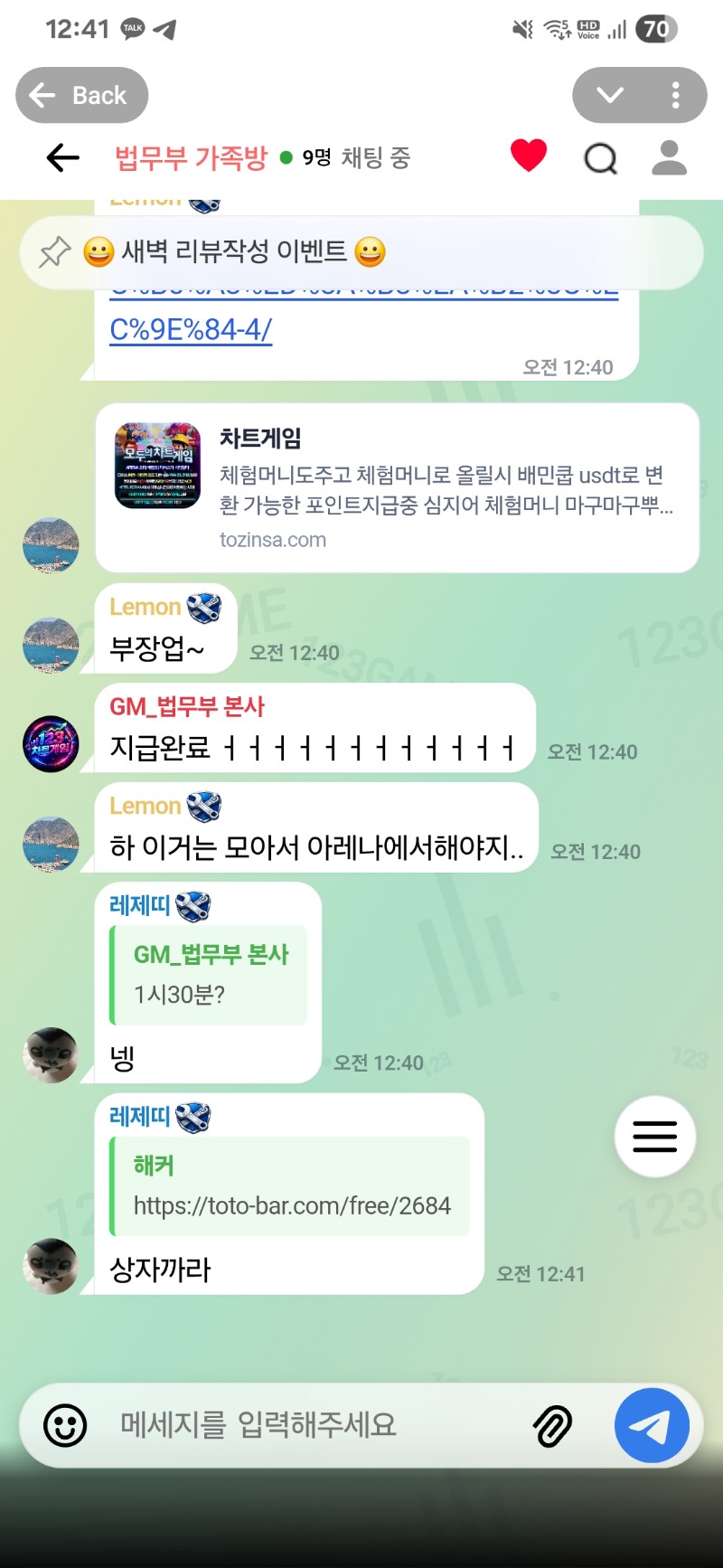 123 차트게임 즐겨보세용~~ 아리로라리 홍보 0 1 0 2시간전 안녕하세요 123 차트게임을 소개 합니다 간단하고 재밌게 즐겨보세영 이벤트도 많이하고 사람들도 모두 친절합니다. 모르는게 있을땐 물어보면서 123 차트게임 모두다 즐기셨으면 좋겠어요 이벤트 정말 많고 재밌으니 많이들 놀러와주세요~~ 1 0 https://daumdca.com/bbs/board.php?bo_table=promotion&wr_id=29131 Author 0 0 Lv.하사 아리로라리 하사 1,390,739 (39%) 아리로라리님 보유 포인트 : P 18,361 03.28 123 차트게임 즐겨보세용~~ 03.28 담카 출석은 필수~ 03.26 중복 출석은 하지맙시다.!! +9 03.18 이른 맛저 +11 03.18 맛점하세용